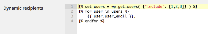 This example uses the WordPress function get_users to retrieve the email addresses of the users with the IDs 1, 2 and 3.
